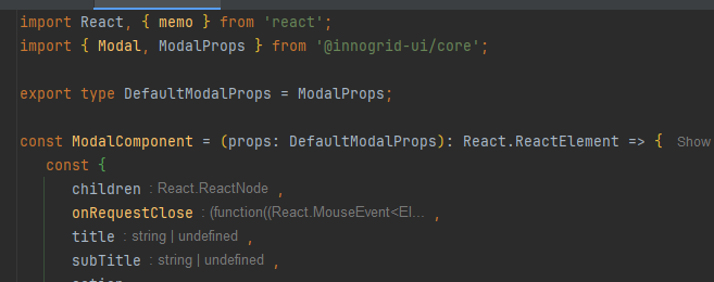 설치가 완료됐다면 위와 같이 package.json에 패킹된 라이브러리가 설치된 것을 확인할 수 있습니다. - 작업 진행한 컴포넌트를 프로젝트에 이식한 후 테스트를 완료해주세요. 아래는 모달 컴포넌트에서 사용한 예시 캡쳐 입니다.
