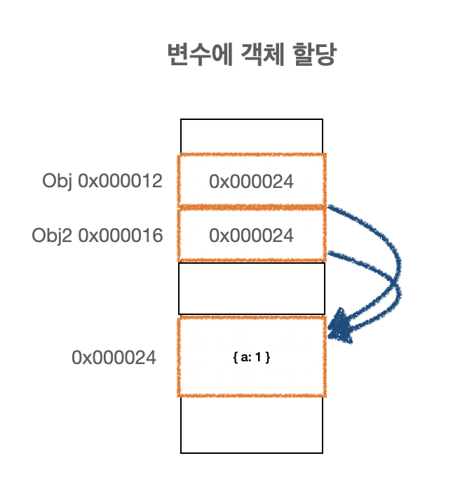 call by address 이기 때문에 8행 콘솔의 출력 결과는 { a: 2 } { a: 2 } 입니다.