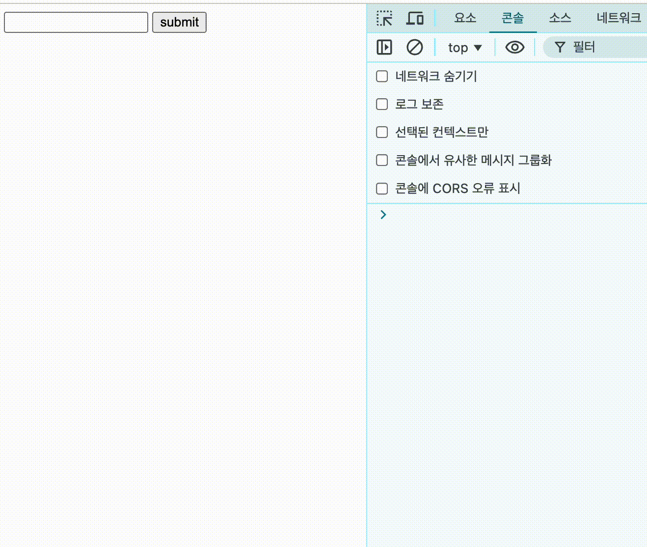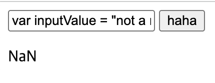 사용자는 "var inputValue = "not a number!! haha"; submitButton.innerText = "haha";" 라는 코드를 input에 입력을 합니다. 우리의 애플리케이션은 기존의 기능을 잃고 submit 버튼의 이름도 바뀌게 됩니다.